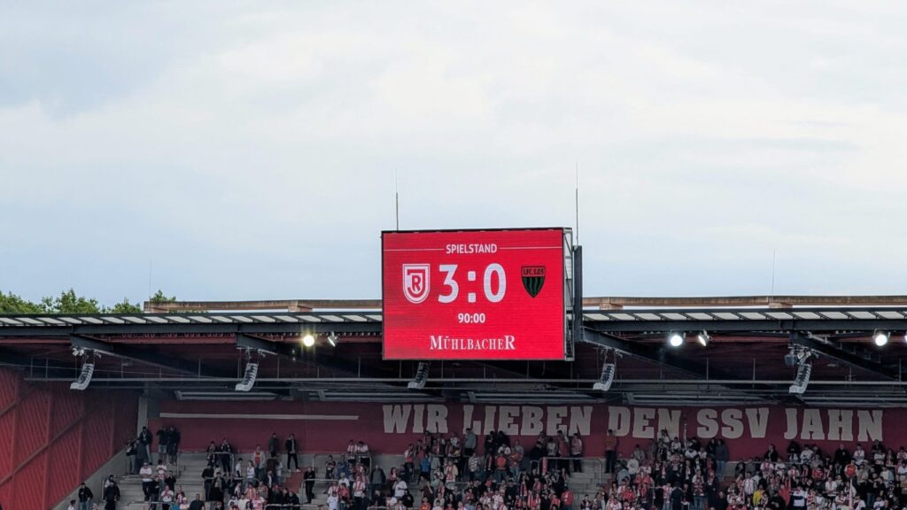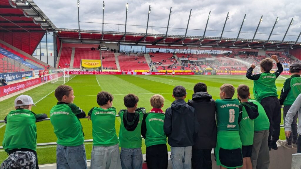 Gut gelaunt ging es anschließend ins Stadion. Dort erlebten die Kinder und Begleiter ein spannendes Spiel, das mit einem tollen 3:0 für den Jahn endete. Die Stimmung war großartig und die Begeisterung riesig.